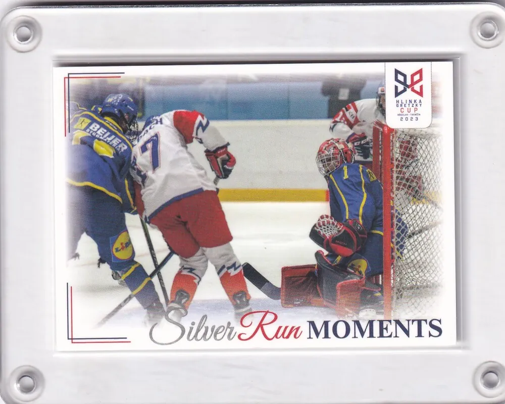Tittlbach v šanci před gólmanem Livem LC Hlinka a Gretzky Cup 2023 Silver Run Moments č.SRM-33Skladem15 Kč/ ks12 Kč bez DPH