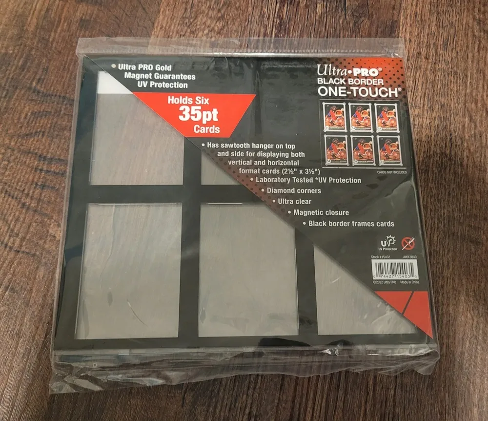 Black Holder pojme devět karet 2-1/2" x 3-1/2" (63,5 mm x 88,9 mm) a zobrazí je vedle sebe.Odolné rámečky jsou opatřeny černým okrajem se zapuštěnou oblastí pro kartu, která umožňuje orámovat každou kartu samostatně.